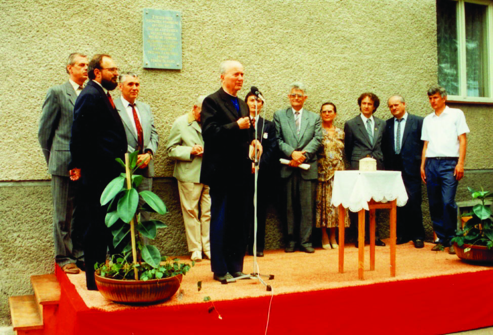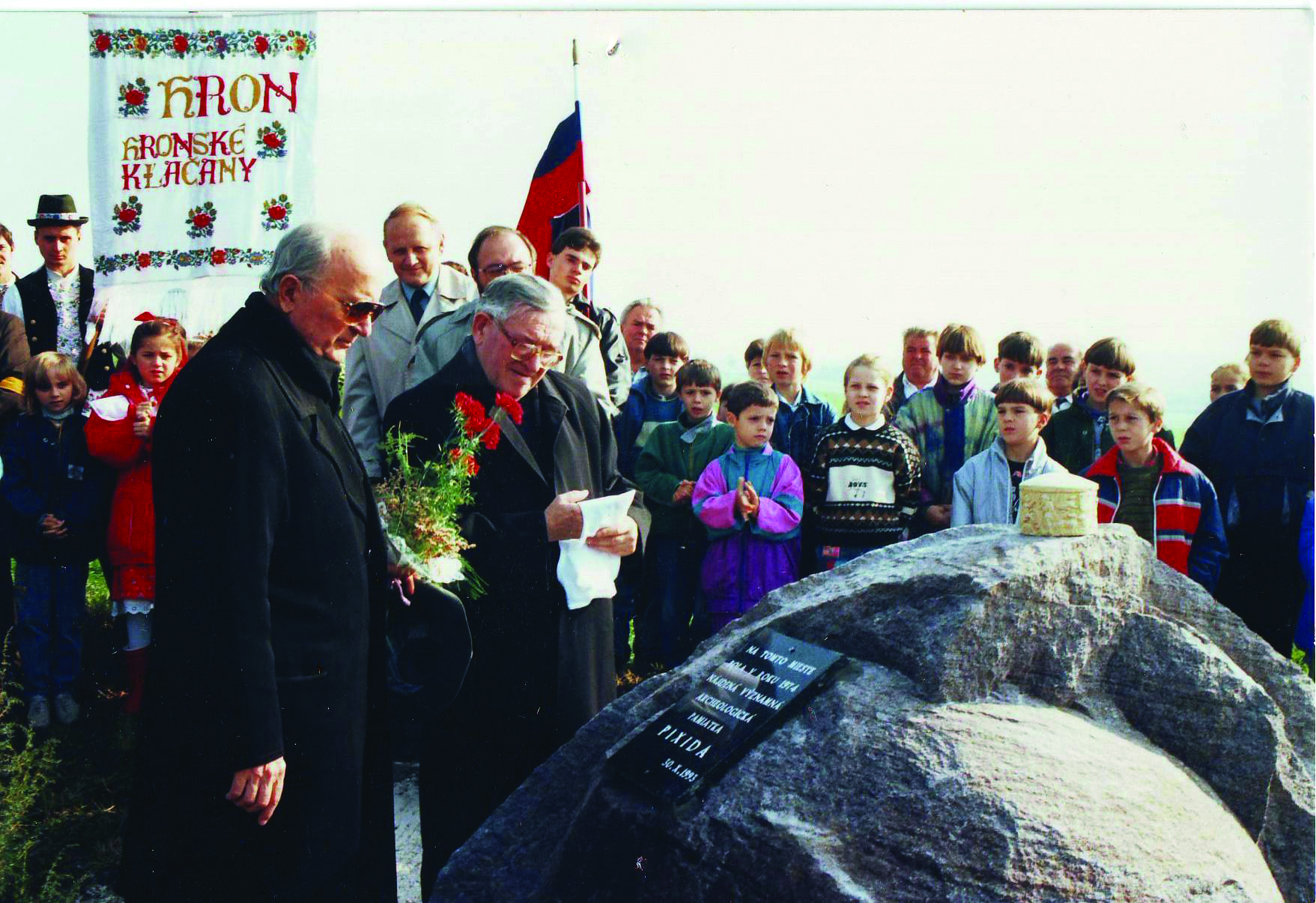 Odhalenie pamätnej tabule na budove kultúrneho domu, r. 1991